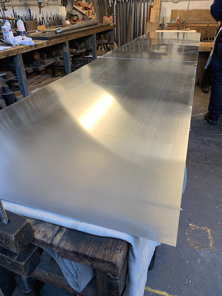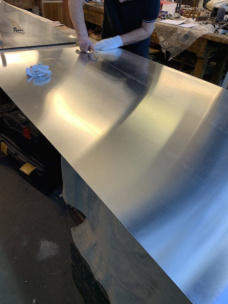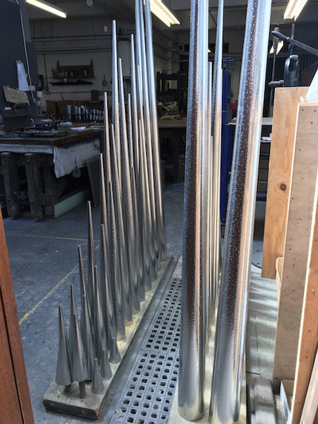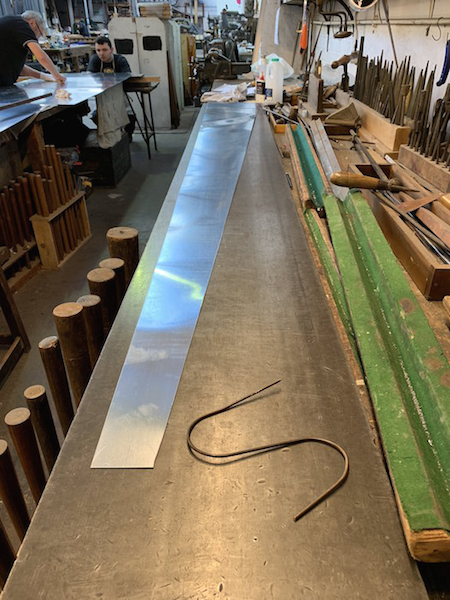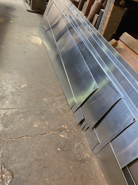 Zinc is marked and cut to make the new Trombone Resonators