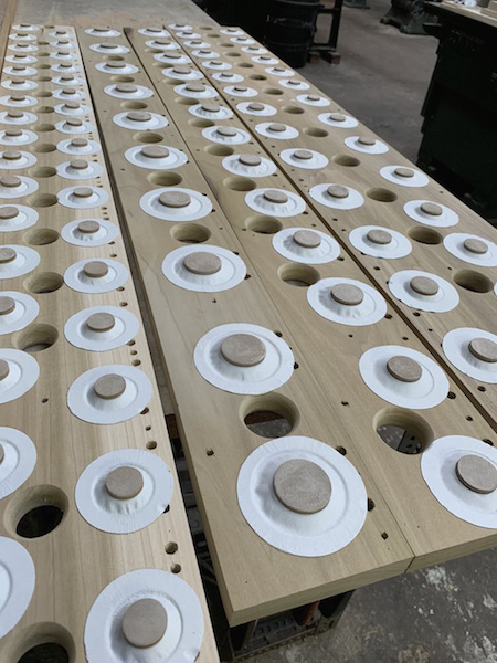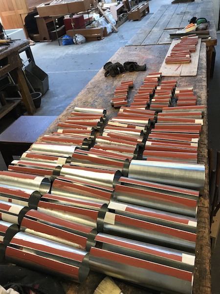 The Resonators are cut apart for knuckling and mitering