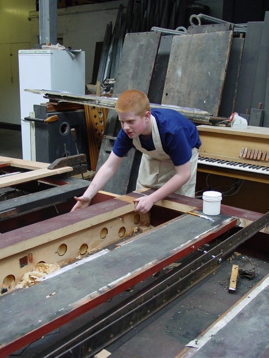 The interior of the instrument was suffering from a level of dirt which had affected the speech of many pipes. The leatherwork, much of it original,