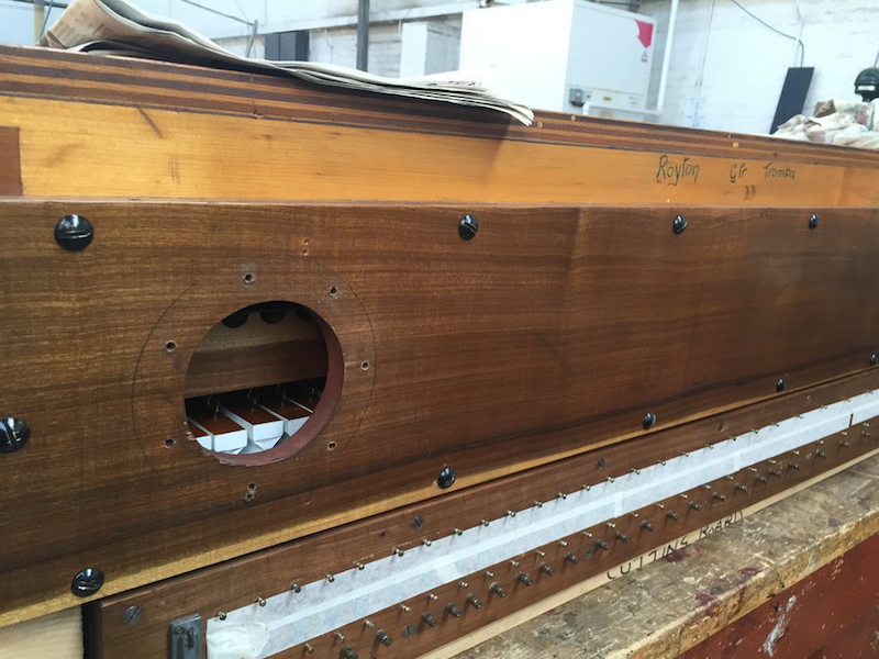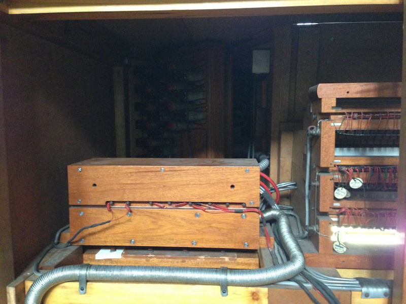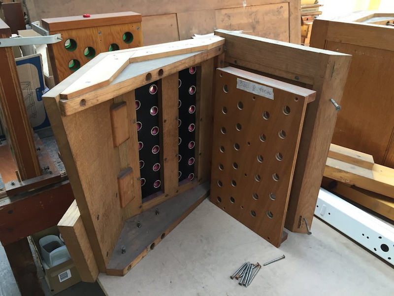 the organ chamber. The existing material was essentially remade and re-voiced in Harrison style. The new Harrison